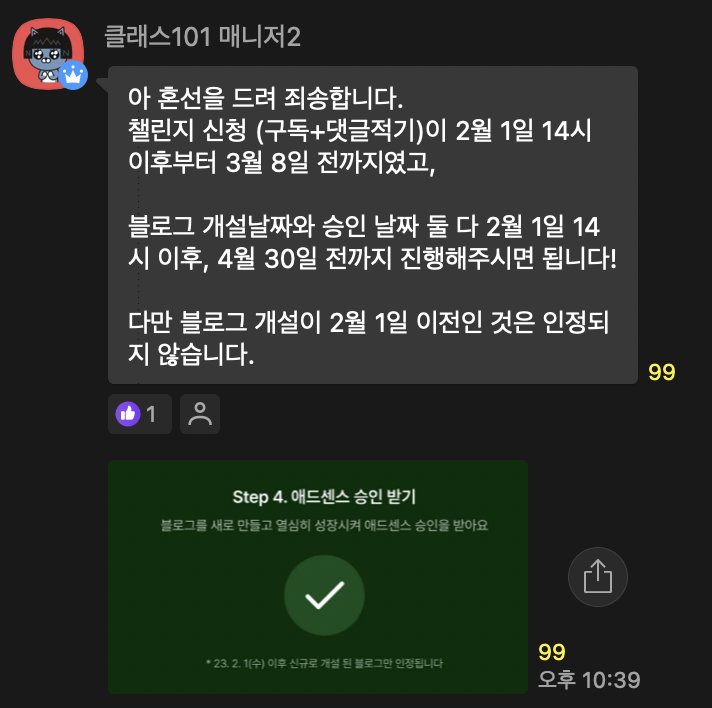 블돈챌 가장 중요한 조건!! (블로그 개설일과 구독 조건!!)