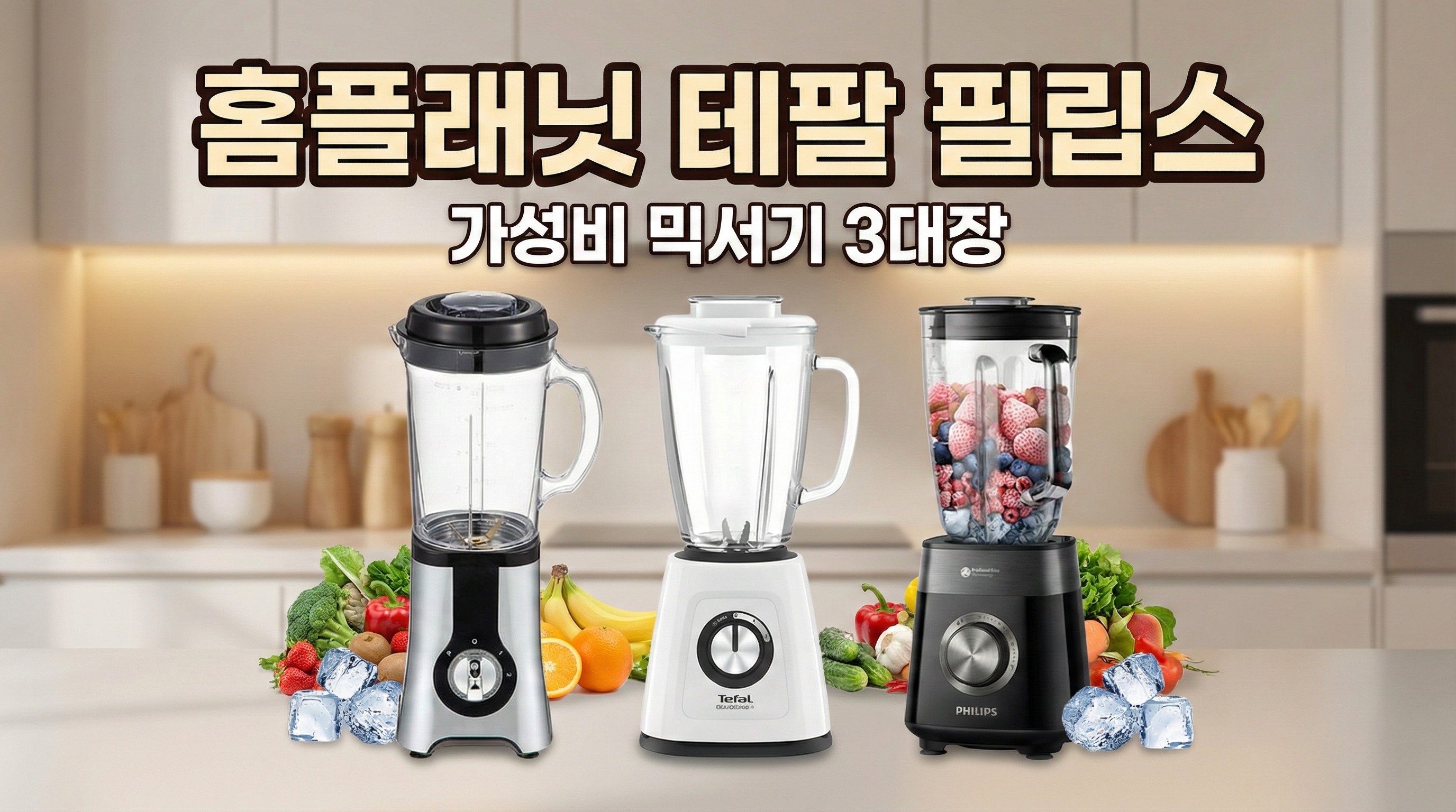 믹서기는 '무조건 비싼 것'이 아니라 '내 요리 스타일'에 맞는 것을 골라야 합니다. 마늘 다지기 용도인지 매일 아침 스무디를 마시는 용도인지에 따라 필요한 스펙이 완전히 다르기 때문입니다. 오늘은 실패 없는 믹서기 구매를 위한 핵심 기준 2가지와 용도별로 가장 평이 좋은 가성비 3대장(홈플래닛, 테팔, 필립스)을 완벽하게 비교해 드립니다.